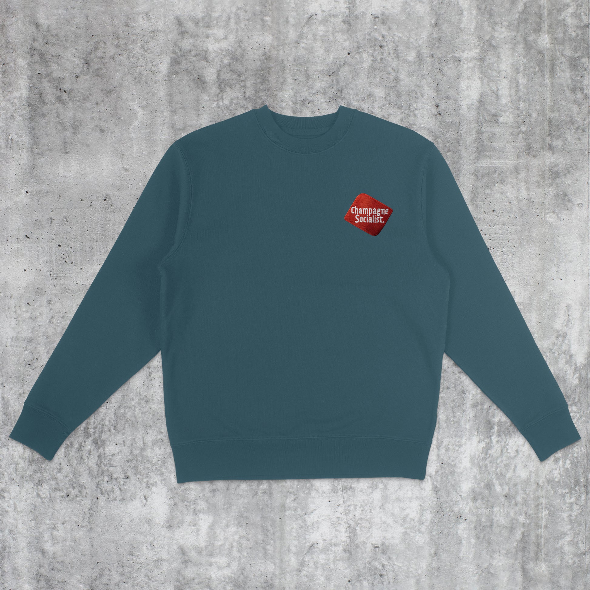Champagne Socialist Embroidered Sweatshirt (Petrol Blue)