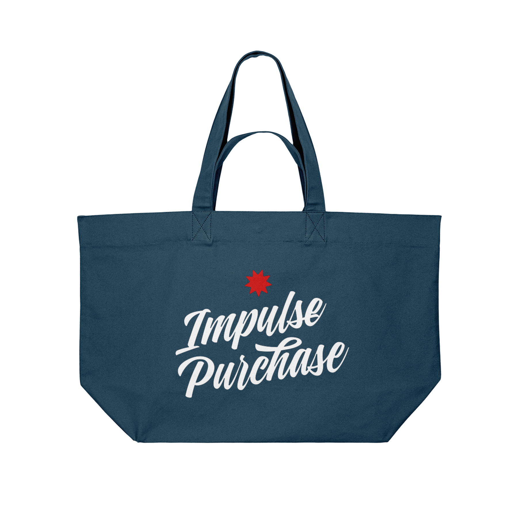 Made out of a heavy-duty recycled canvas, it's a roomy 61 × 38 cm. There's a snap closure at the top, and a smaller internal pocket for your bits and bobs. Printed on one side only.